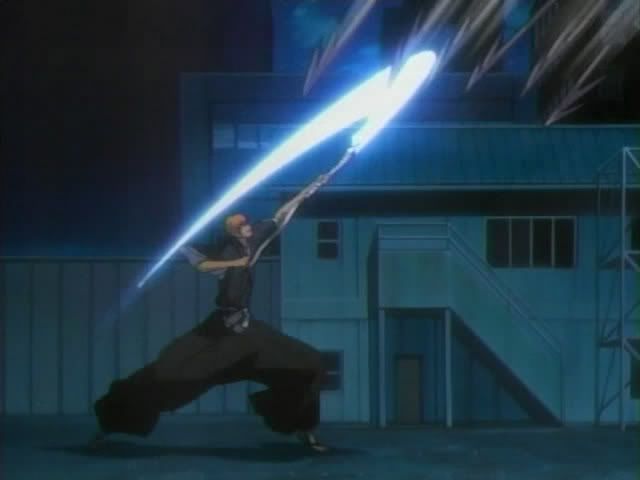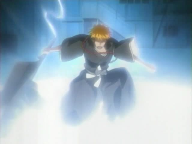 Back at the construction site, Ichigo is still fighting it out with Koga's doll. He manages to block her attacks and still protect Keigo. After getting a small break in fighting he goes to check on Keigo. Keigo is still alive and manages to say "Ichigo" which confuses Ichigo. Koga tells Ichigo that if Keigo can see a Shinigami that means he's close to death and unsaveable (because no one knows that Keigo can see Shinigami anyway.) Koga then goes to on talk a bit more and Keigo tells Ichigo to run away before losing consciousness. This launches Ichigo into a touching montage of Keigo's greatest moments (including the BOHAHAing, the dork glasses, the emotional pointing, the general spazzy nature, the anger of being left out of everything, and even the "kiss my ass because you suck, Ichigo" moment.) Ichigo loses it and goes all blue. Koga's dolls launches an attack and Ichigo launches a Getsuga Tenshou which slices the doll into. But it doesn't kill her... she lauches iron ropes at Ichigo and tangles him up. Ichigo balloons up and explodes in a flash of light.