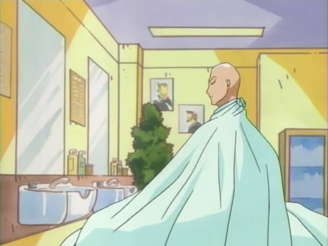 "Hmm... this bald look just isn't working for you," said the barber. "I know which look will work best for you. Don't worry! Just leave it to me!"