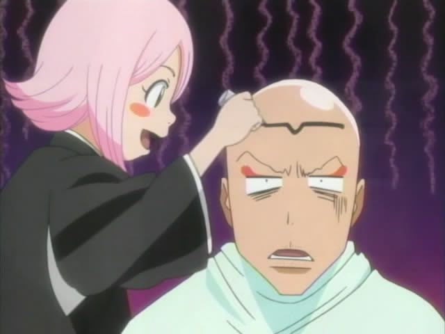 Ikkaku tried to stop the tiny barber before it was too late. (He was too late.)