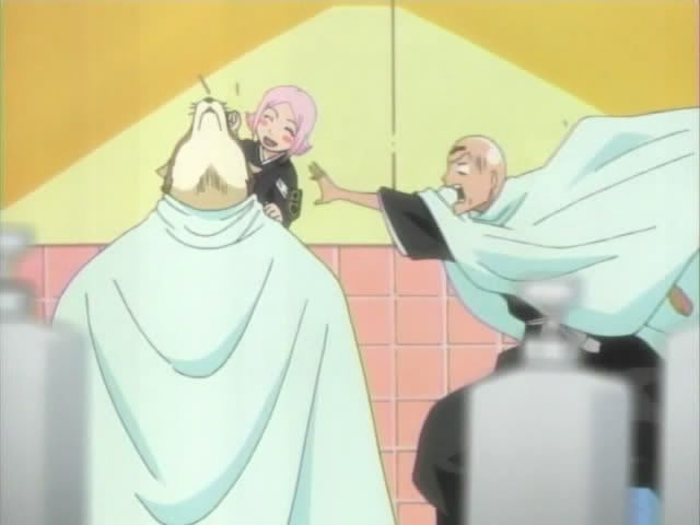 Suddenly there was movement at the next station. It seems that Captaiin Komamura had also come to the barber's. Ikkaku couldn't help but notice the way he seemed to shine.