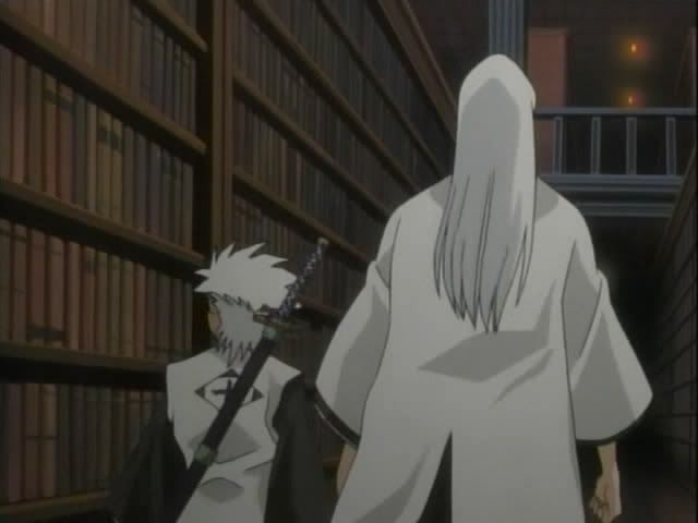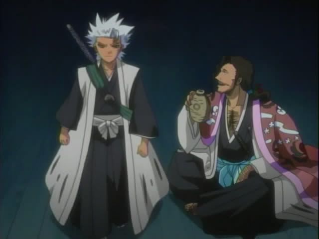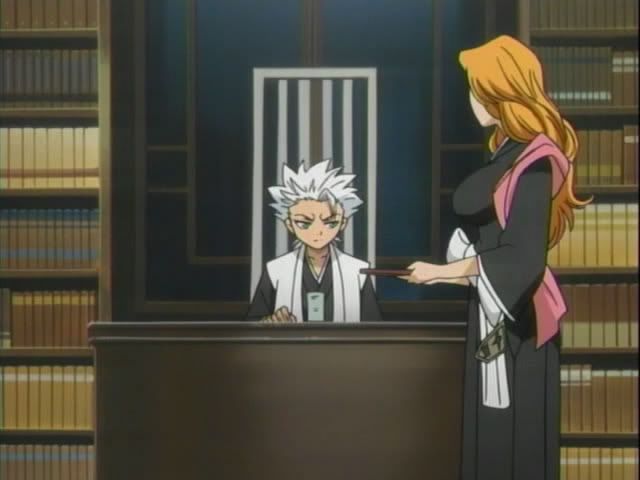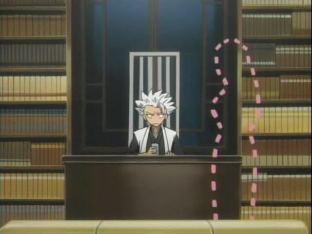 Back in Soul Society Hitsugaya and Ukitake explore the library and totally don't find what they were looking for. (Note to self: Never check out a book that Hitsugaya wants to read.) And over the on the roof of the 8th... Shunsui is enjoying a nap.