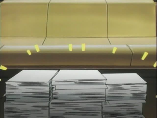We then check in with the goings on in Soul Society... specifically the 10th Division. Matsumoto brings Hitsugaya a cup of tea and the two chat for a bit about Soi Fong. (And I must say I'm glad that Matsumoto came out looking pretty much the same as she did back during the SS arc.) But when the large stack of paperwork is brought up... Matsumoto disappears.