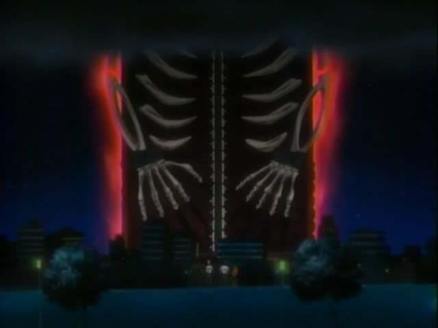 Back in the human world... someone is putting on a nice fireworks show. But this isn't your normal fireworks show... this is a message delivery system. (The note is from Ririn.) And once the fireworks fade a giant version of The Mod Squads gate appears above Karakura. Ichigo quickly changes into a Shinigami and the gang goes racing off, leaving Ichigo's body behind.