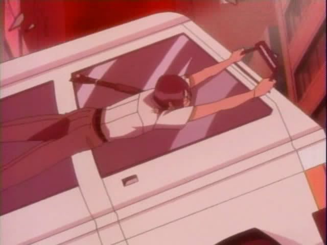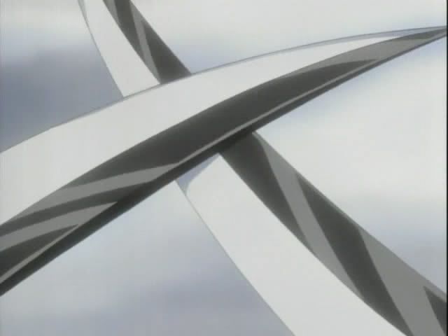 We go back to the human world! Ichigo & Co. have made it to the gate and find The Mod Squad waiting for them. The gate begins to suck things into it starting with Kon who only has a pencil-thin Quincy to weigh him down. While everyone holds on for dear life Ririn pulls out something that looks familiar. (It really does nothing for her.) The van that Ishida is holding on to finally gives into the gate and he goes into the gate. Orihime is also losing her grip and as she gets sucked in Ichigo grabs her and they both move toward the gate. Renji nearly gets smashed by a bus (I think it was a bus) and leaps up after Ichigo. Ichigo tosses Orihime to Renji and powers up for ban kai only to get... nothing. His ban kai fails to initiate. Renji is hit by a pole that's also being pulled into the gate and loses his hold on Orihime. Everyone gets sucked into the gate.