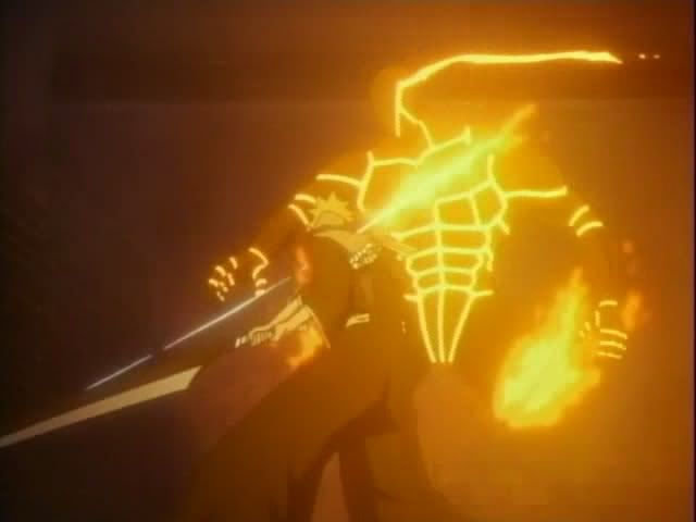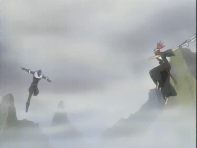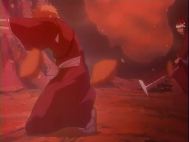 Anyway... the fight is on! Claude takes the form of Ichigo and we get more Ichigo on Ichigo action. (My Zangetsu is bigger than yours.) Renji takes on Nova in a super hot redheaded battle (thank you so much!) Nova can manipulate space so all of Renji's attacks end up hurting him. (I love Nova. He even did a finger wag to Renji.) So basically... they're getting nowhere fast and they're running out of time.