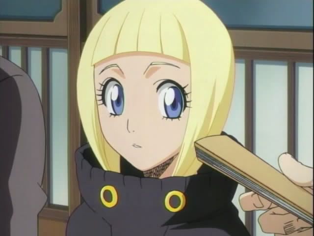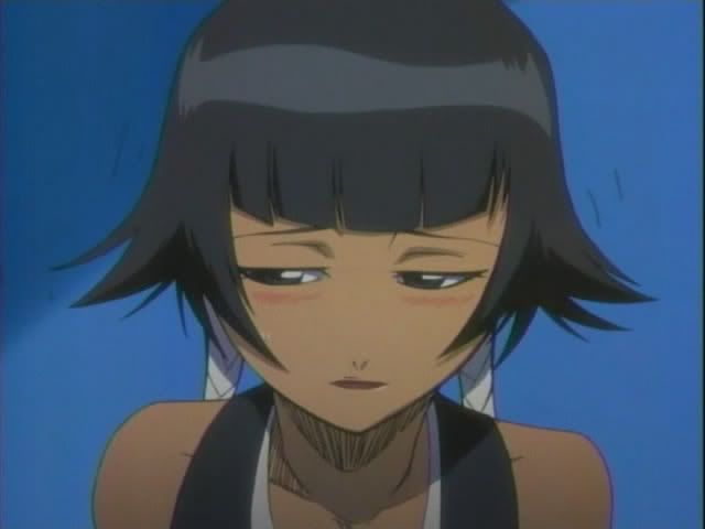 Applauding Urahara appears. (Hatless of course.) After getting his hat back he explains some things to Ichigo. It seems that Urahara noticed Ichigo's inability to call his ban kai when he wanted. Urahara explains to Ichigo that before Aizen resurfaces Ichigo needs to be able to use initiate ban kai. (He even kneels before Ichigo again.) Urahara also spills the beans about Ishida's lost powers. (Yes, this is a change, but I think think it's good... will explain at the end.) Everyone moves in on Ishida (even Renji!) Ishida gets a bit defensive and Ichigo delivers a little speech about the importance of fighting together. (Which from the looks on these faces... seemed to impress some people.) Ririn also tells them that their classmates were returned unharmed... in the middle of nowhere. (Keigo drools. But before anything else can be said Yoruichi arrives.