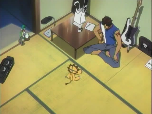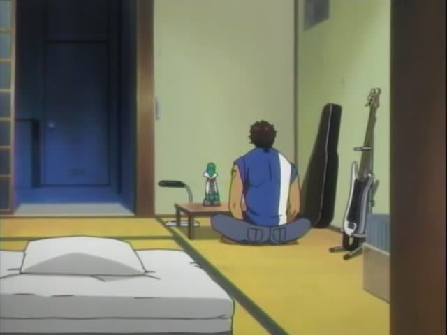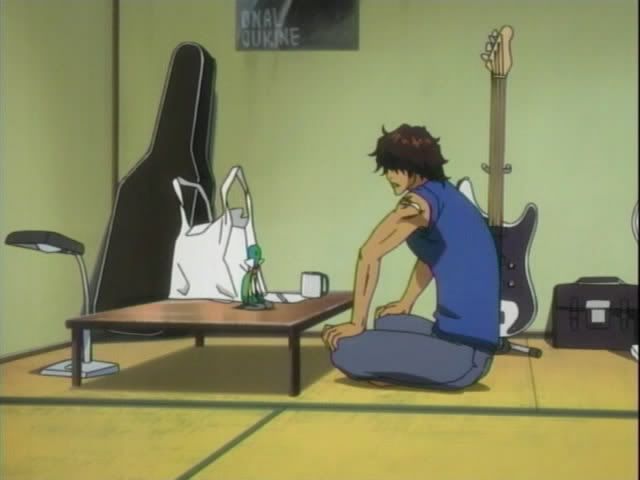 But back on Earth Chad is on the search for a body for Nova. (I love that they play "My Pace" in the background here.) Chad spots a cute little turtle in the claw machine. Back at his place, Chad inserts the pill in the turtle and the adorableness begins. After waking up Chad and Nova have a long, deep coversation. And by "long, deep conversation" I mean complete and total silence. This continues until Kon pops up out of nowhere. Kon breaks out the tears and tells his story.