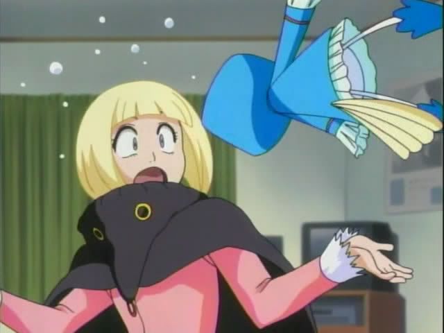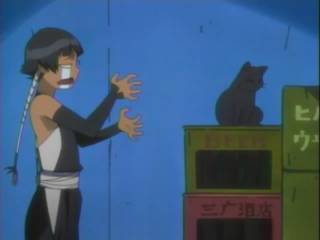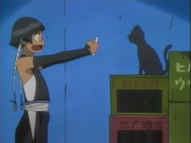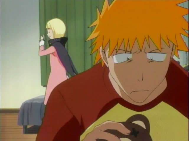 But all is not well in Karakura... Claude and Nova sense something. (I wish Nova was a regular character!) On the street a woman falls into a trance and is called by the woman from before. At Ichigo's place Ririn wakes up and alerts Ichigo to trouble. They confront the woman, but she throws her victim toward Ichigo and makes a break for it. Ichigo and Ririn give pursuit.