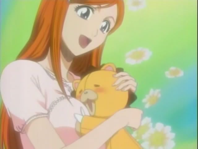 Kon finishes telling his story to Chad. (Not only is Nova the cutest Mod Soul, but he makes tea! And where did that tea go?) Chad and Nova are less than impressed with Kon's sob story. There's really only one place that Kon really wants to be and that's snuggled against Orihime. But there's a problem... Claude is there in his place!